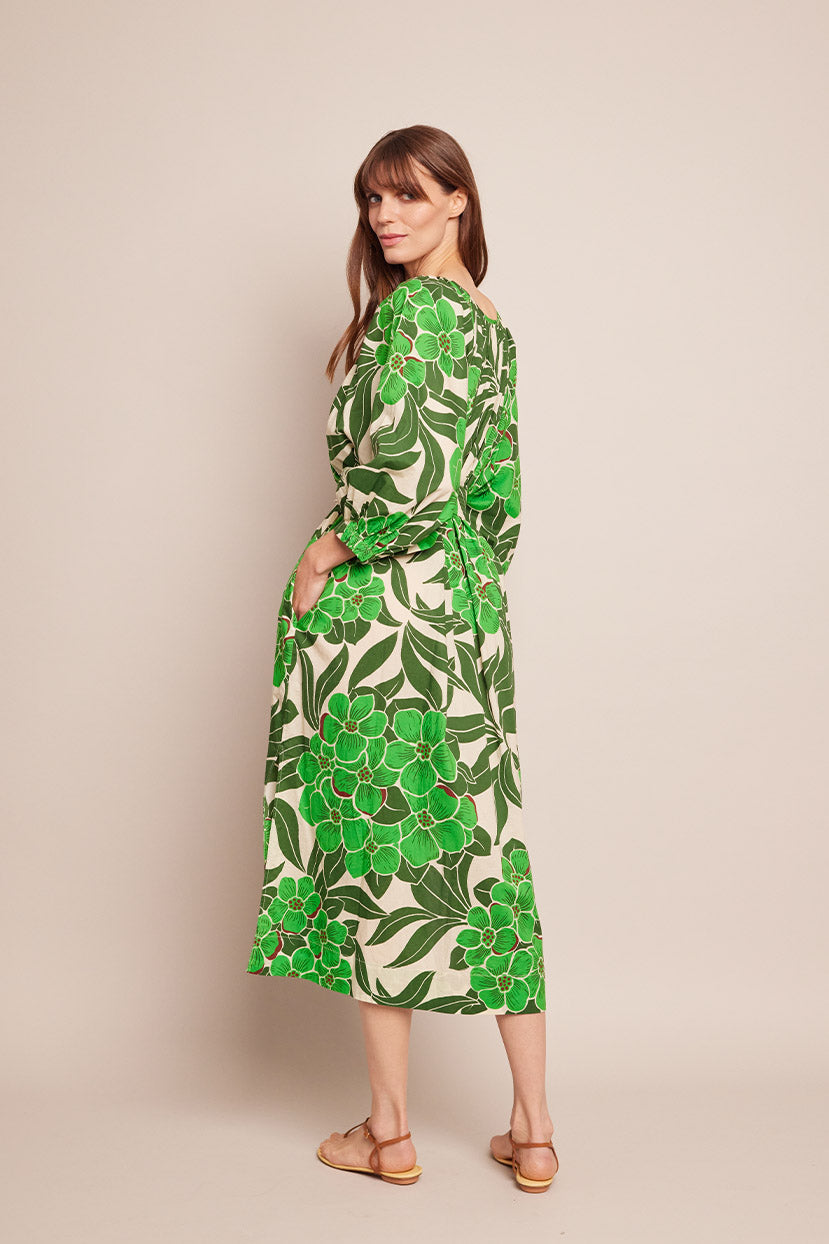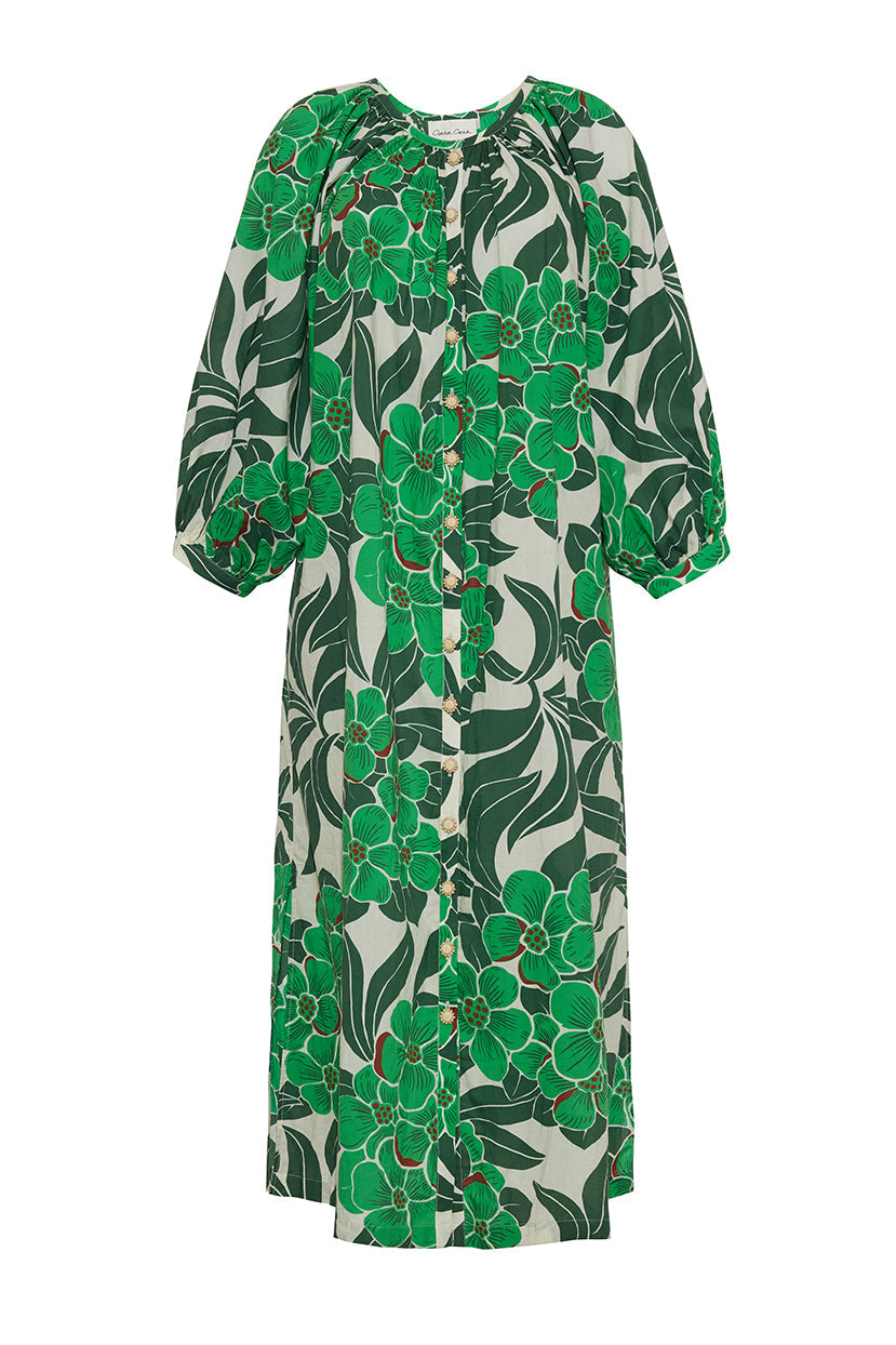 With its breezy volume and eye-catching bold floral print, the Simone Dress is perfect for both easy days and festive evenings. With finished side slits, there’s plenty of movement through the skirt. Side-seam pockets offer hidden function, while crochet-covered buttons add luxurious detail.
