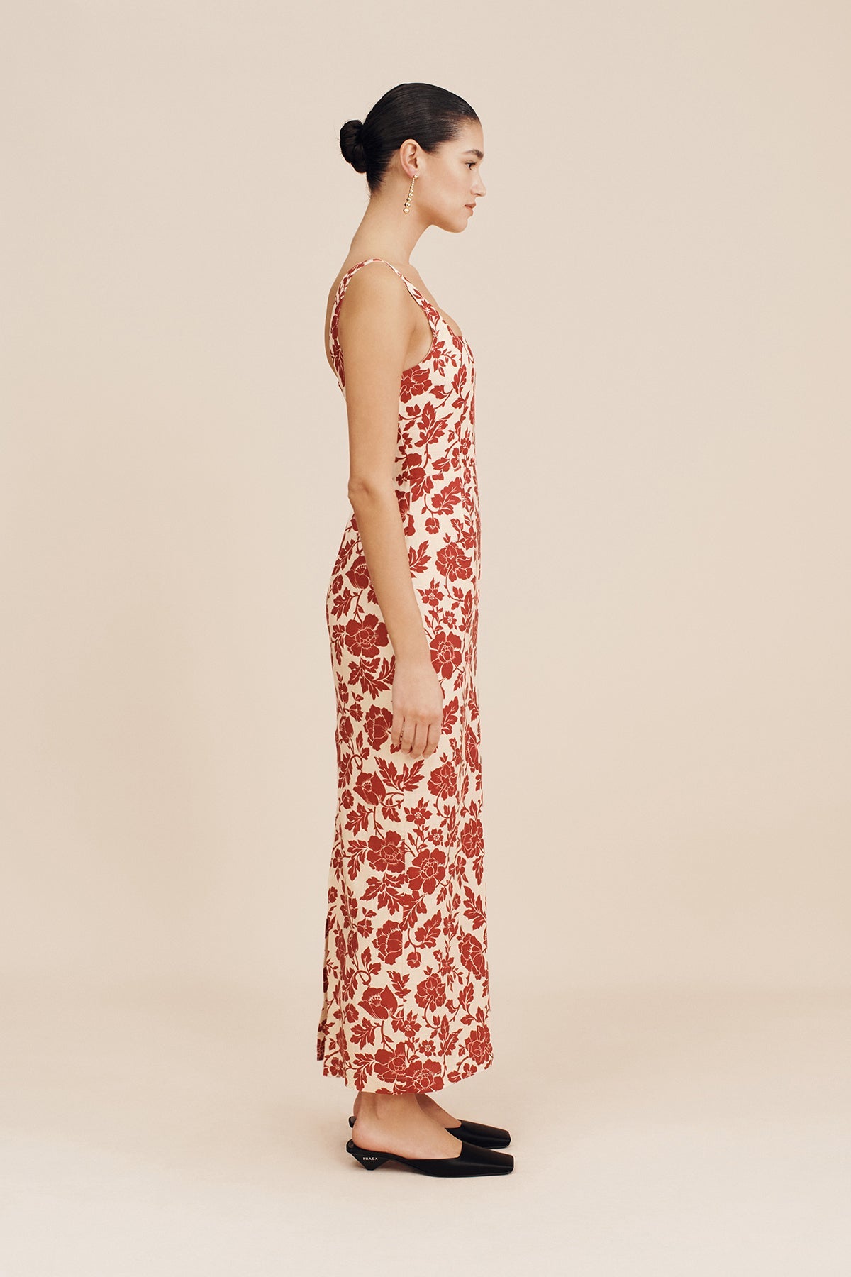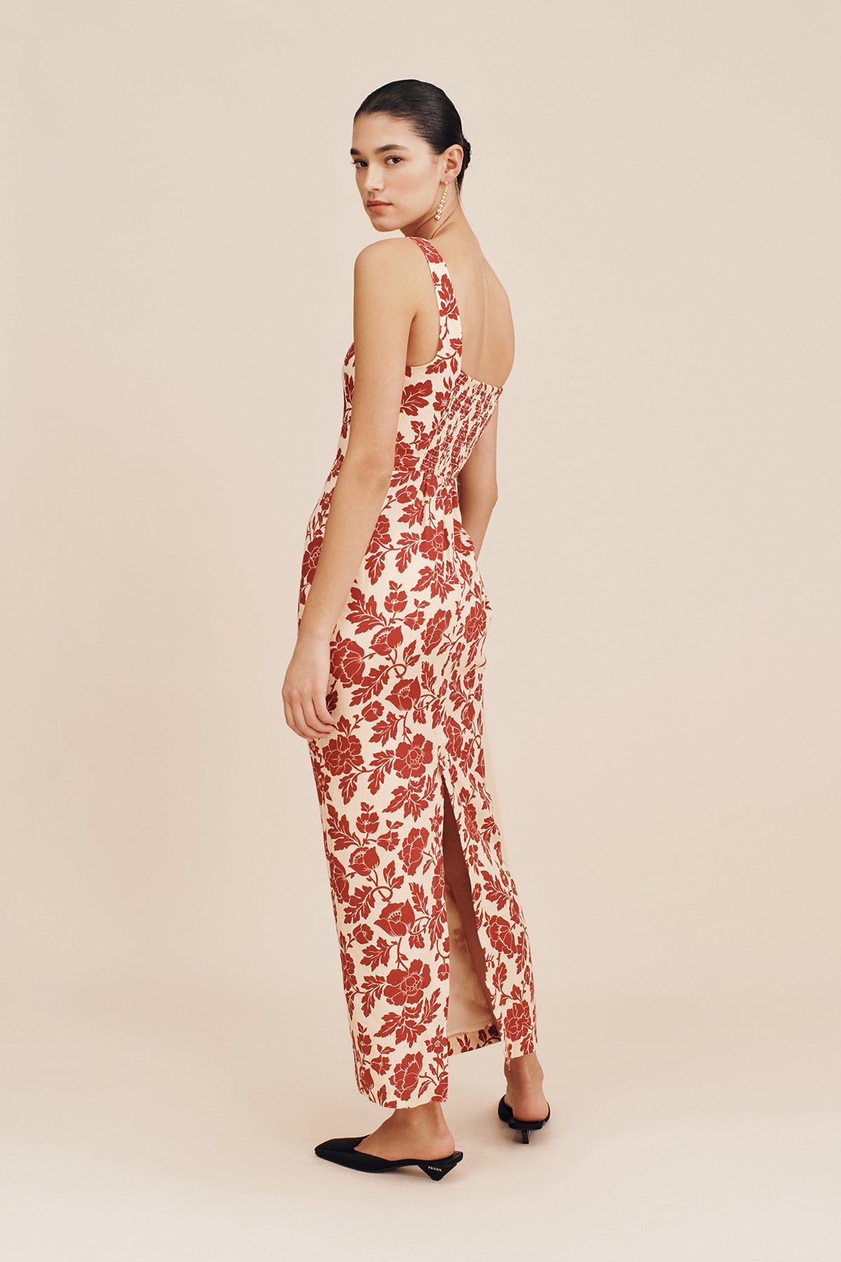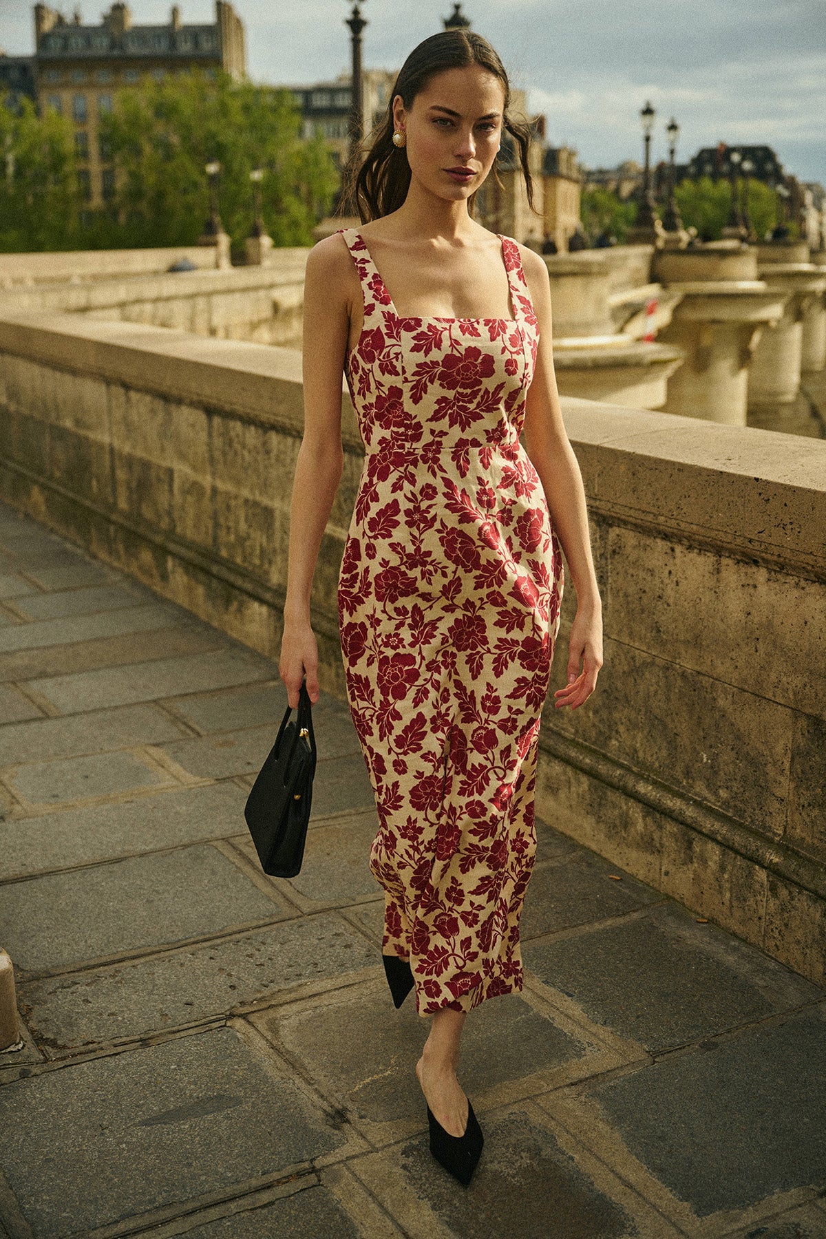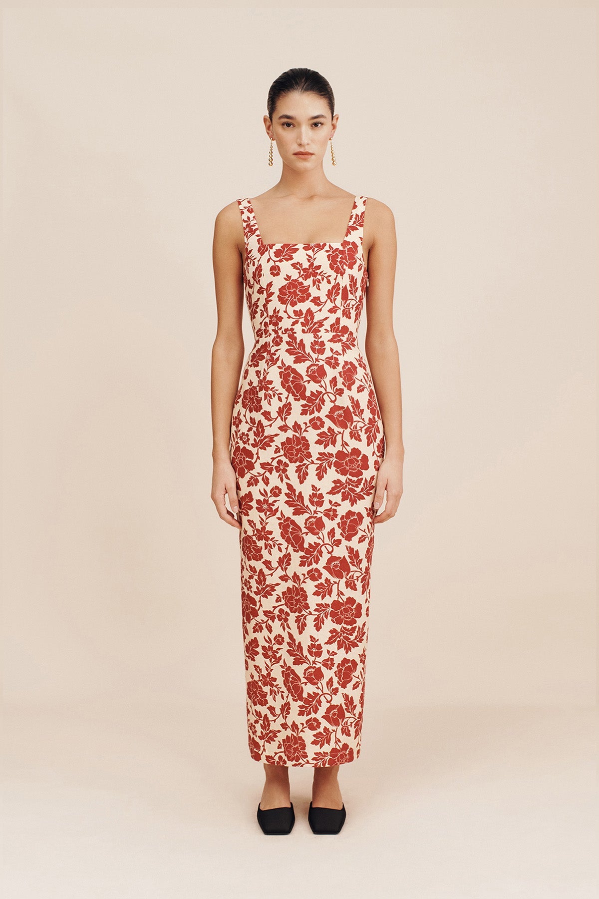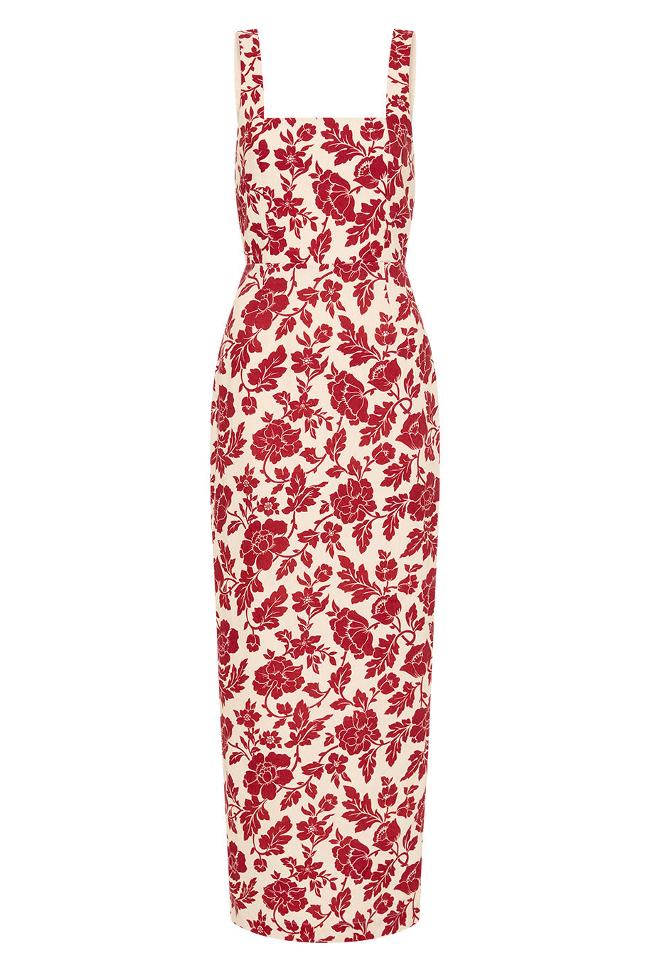 Adorned with vintage-inspired florals, the Skyla Column Dress features an elegant square neckline, wide straps and a statement split at the back to allow for movement. A chic option for both day and evening wear.