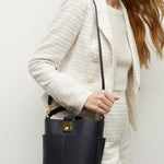A petite take on the original’s chic, sculptural shape, the small Crest Lock Bucket Bag is crafted from supple leather and finished with a crest-lock closure. With a generous interior pocket, four exterior compartments, and a removable shoulder strap, it boasts unmatched versatility.