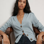 The Solene cashmere cardigan is the seasonless, luxurious staple every woman needs. A classic cardigan is the cornerstone of any chic woman’s wardrobe, and, in 100% sumptuous cashmere with an exceptionally soft handle, our Solene is the ultimate. Finished with a V-neckline and tortoise buttons, it’s endlessly versatile—style with your favorite denim for an everyday look, or over an A-line maxi skirt for a more feminine feel.