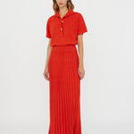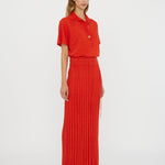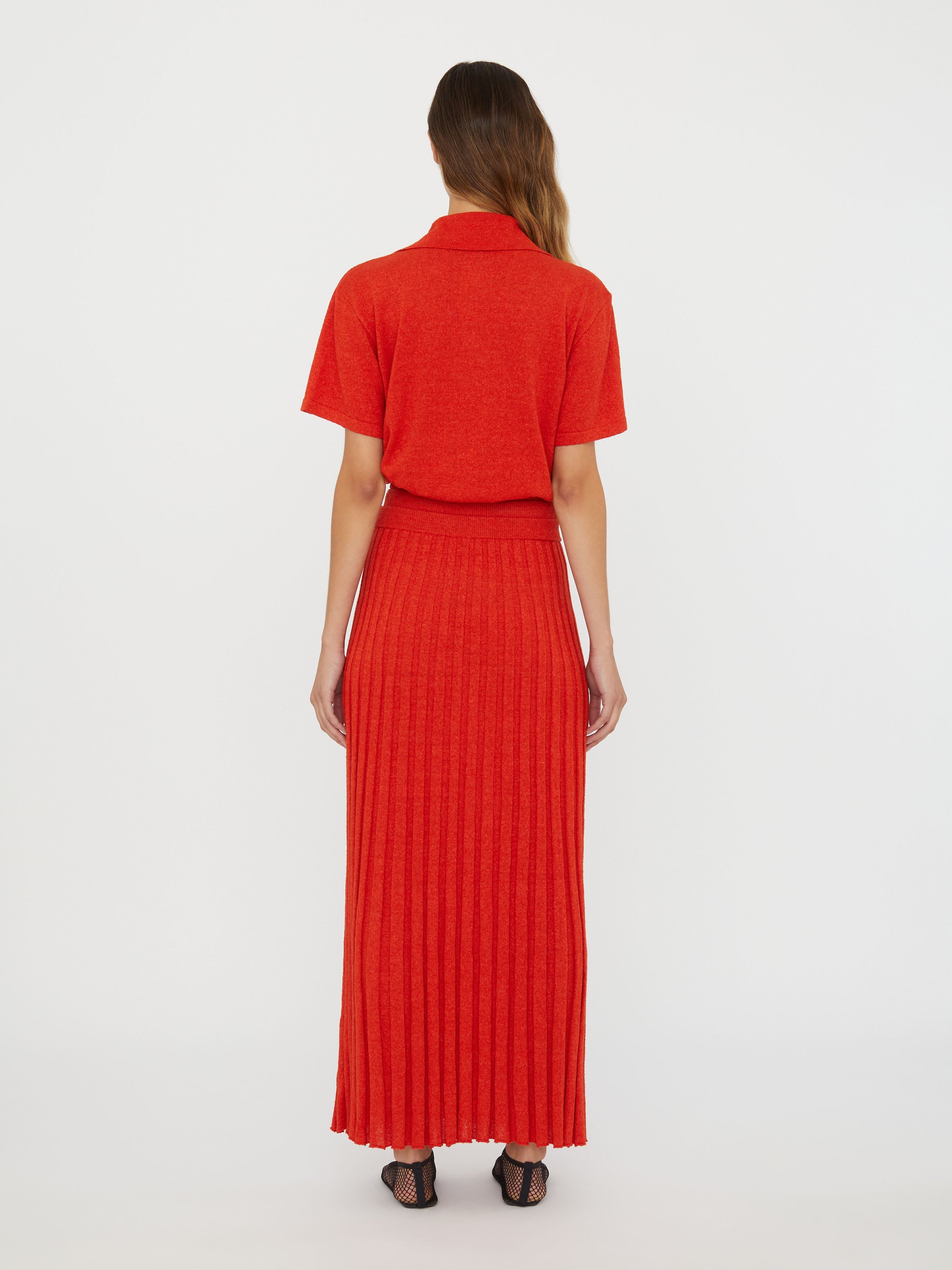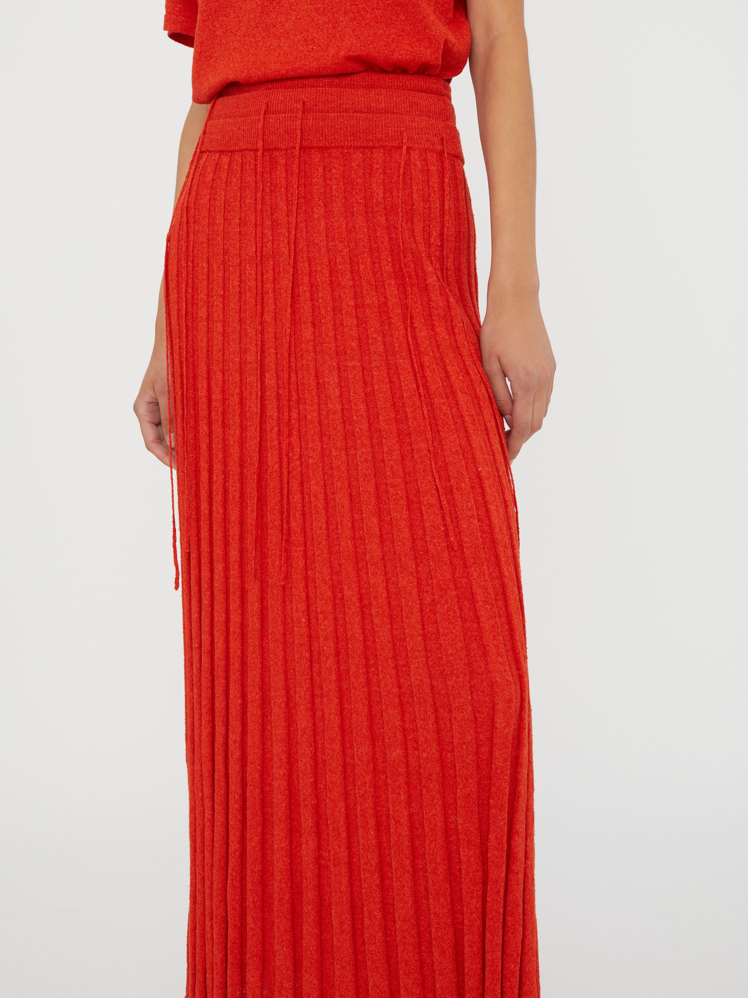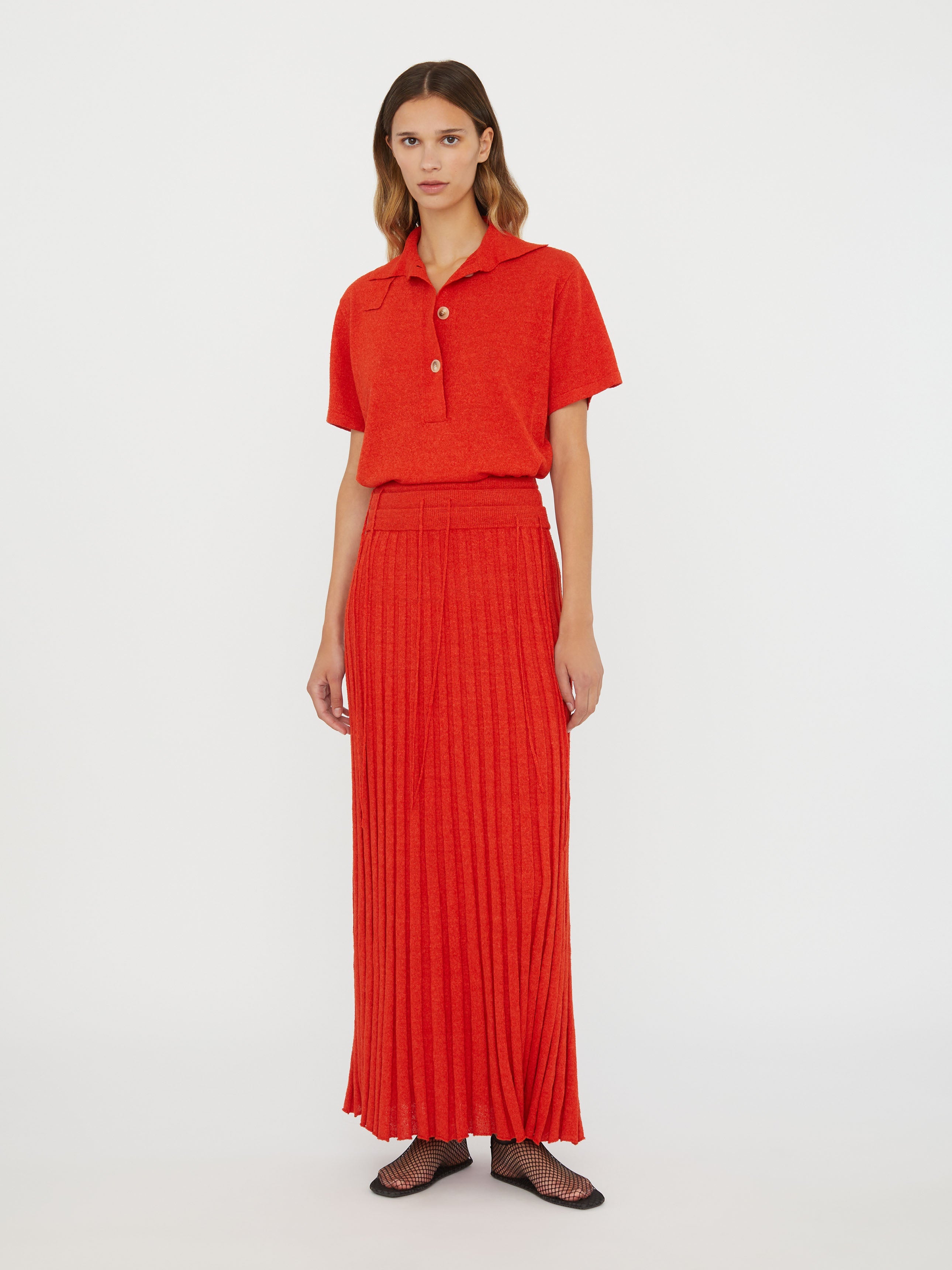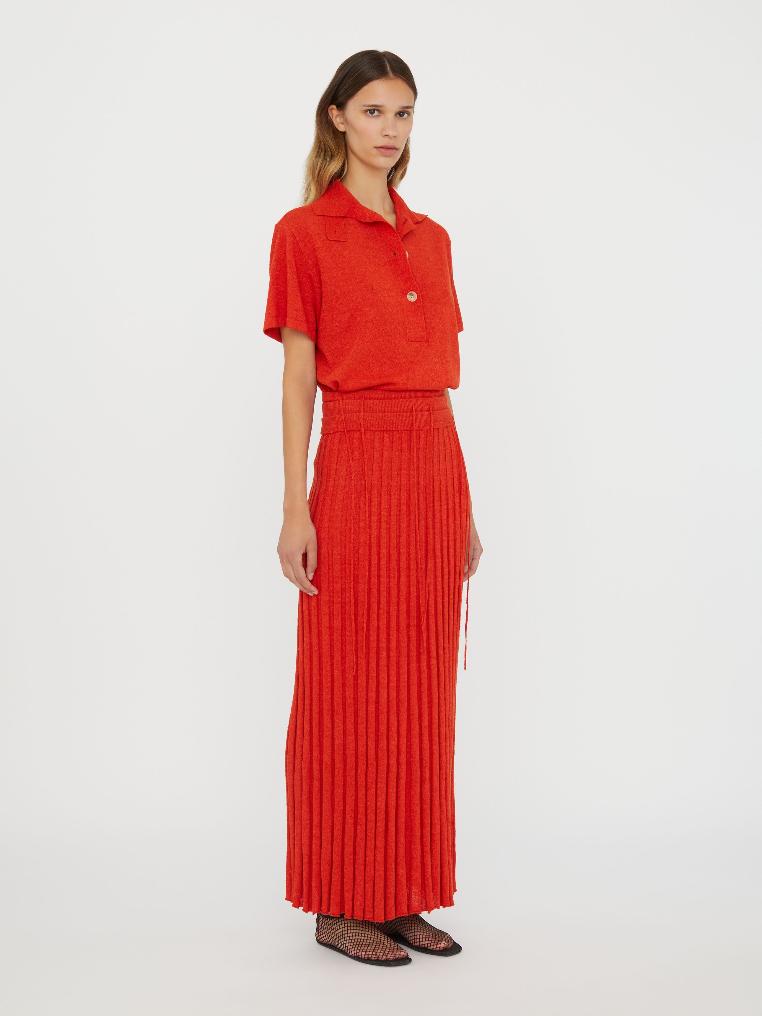 Designed for elevated beachside dressing. Featuring a layered self tie waistband, this maxi skirt is composed of a lightweight silk and linen blend rib structure that captures the eye as you move.
