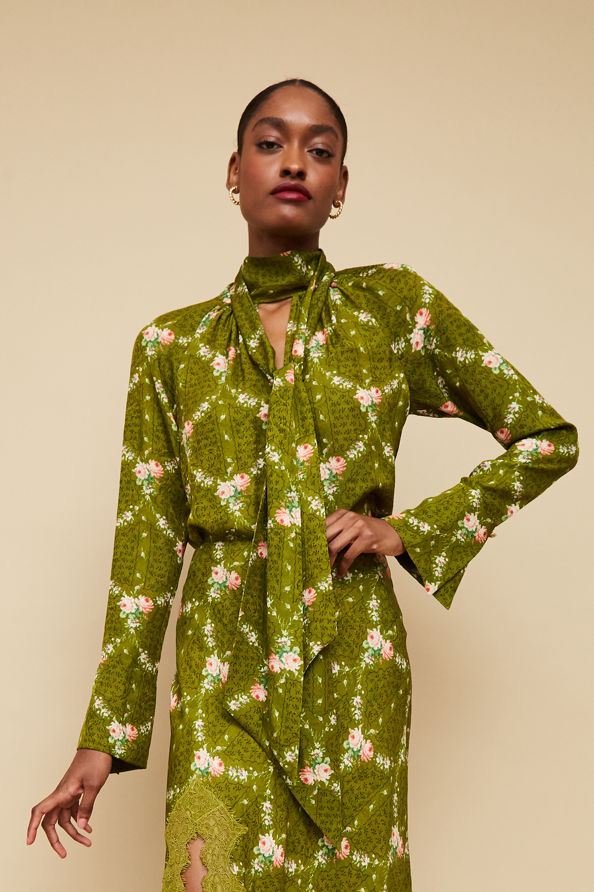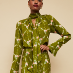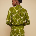 • Center back slit at back with self covered shank button with gold rim detail for closure