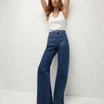 Meet the Taylor, a classic high-rise, wide-leg jean—now updated in a timeless blue wash. Made in LA from non-stretch premium Italian denim, this wear-forever style will be your new versatile go-to. Style with a tee and flats for day; dress it up with a printed top and heels for nights out.