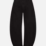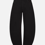 An exaggerated take on the trending barrel silhouette, this unique fit is your new closet necessity. With a flattering high rise, these jeans feature a curved outseam for a playful bubble effect. Designed to be worn cuffed and hit at the ankle, the 2.5" twice-rolled cuff can be unrolled for a longer, more dramatic inseam.