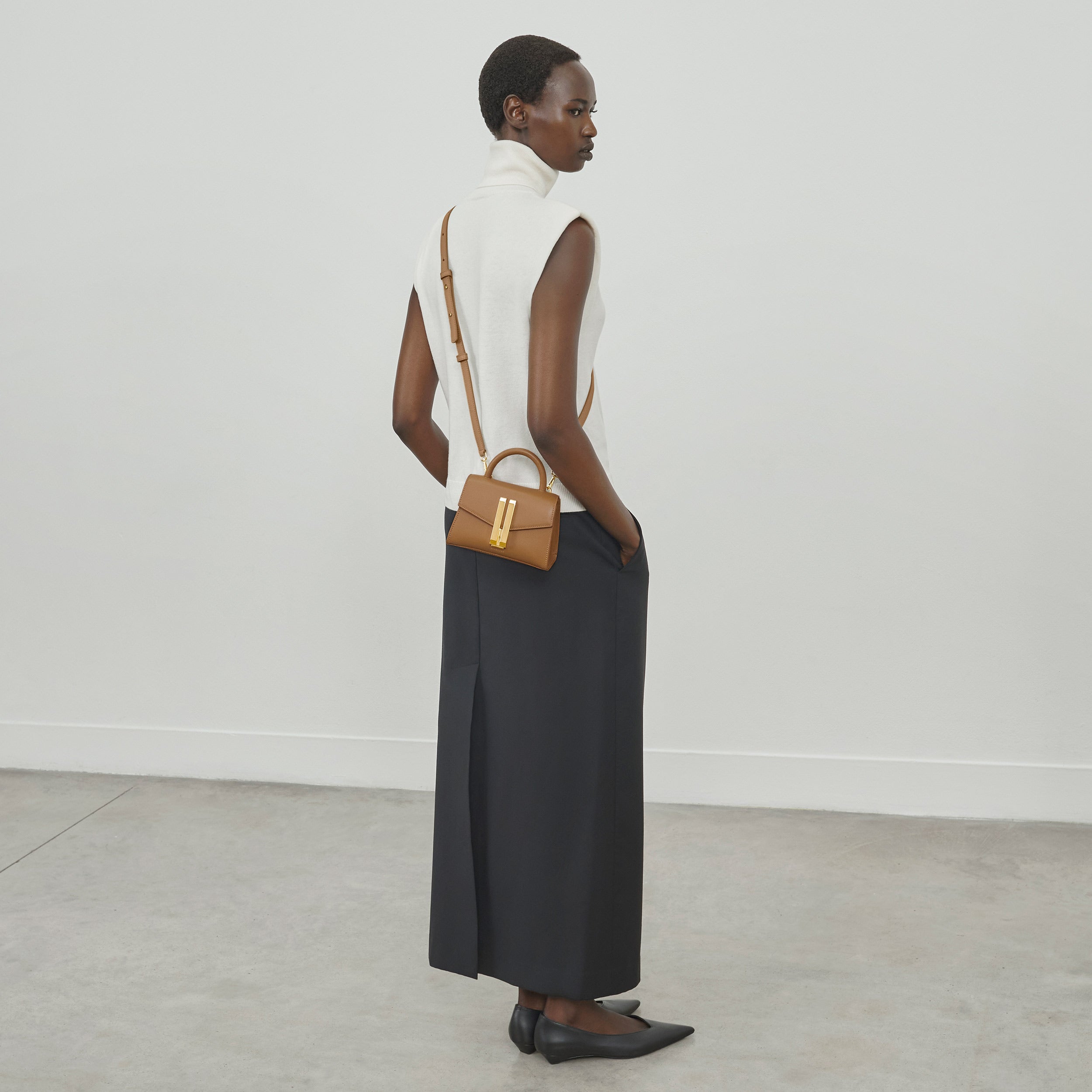 Made ethically and sustainably, The Nano Montreal is a petite, structured cross-body bag from The Montreal collection. A DeMellier take on the micro-bag sensibility, it features a removable/adjustable cross-body strap and tubular top handle - versatility as well as elegance.
