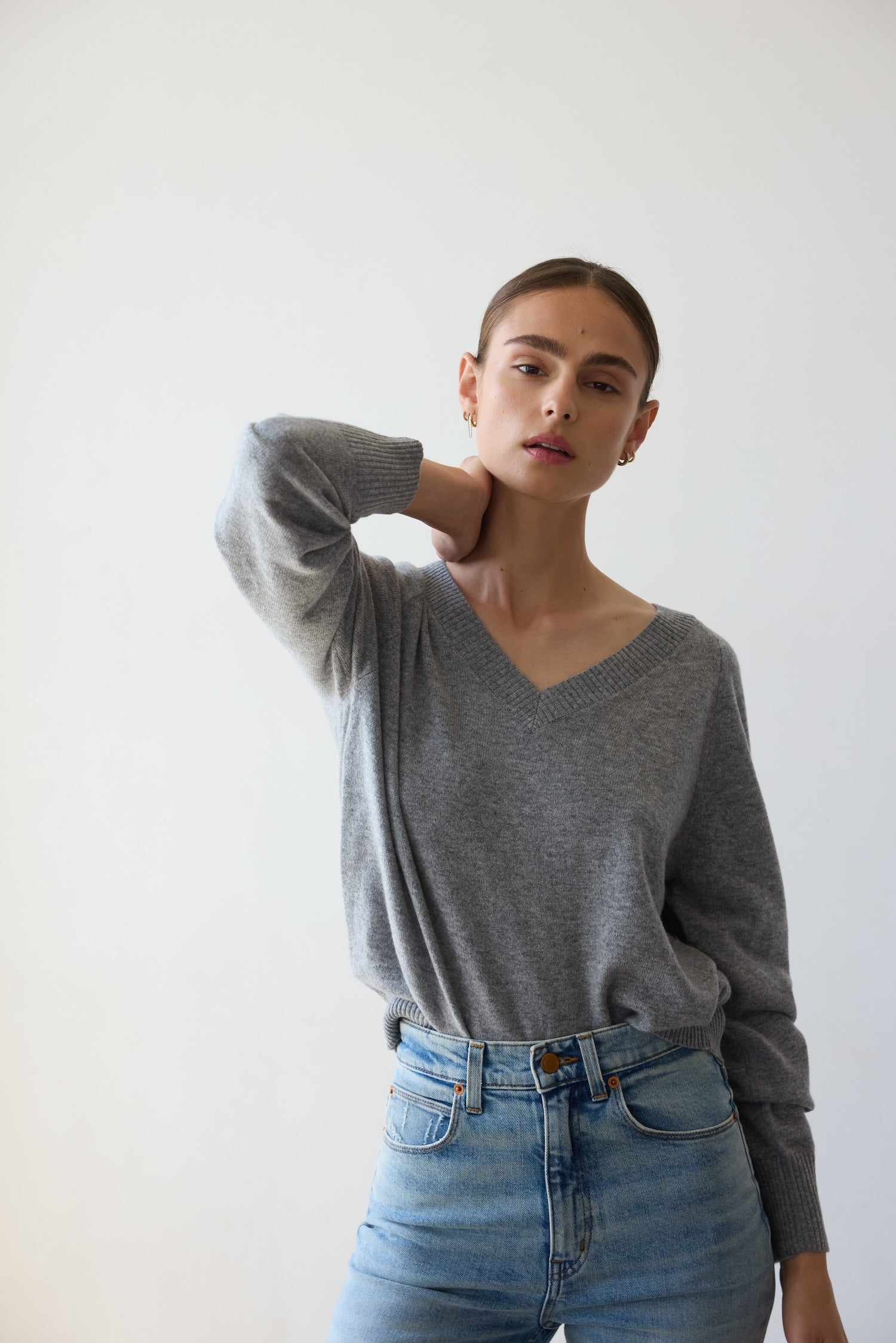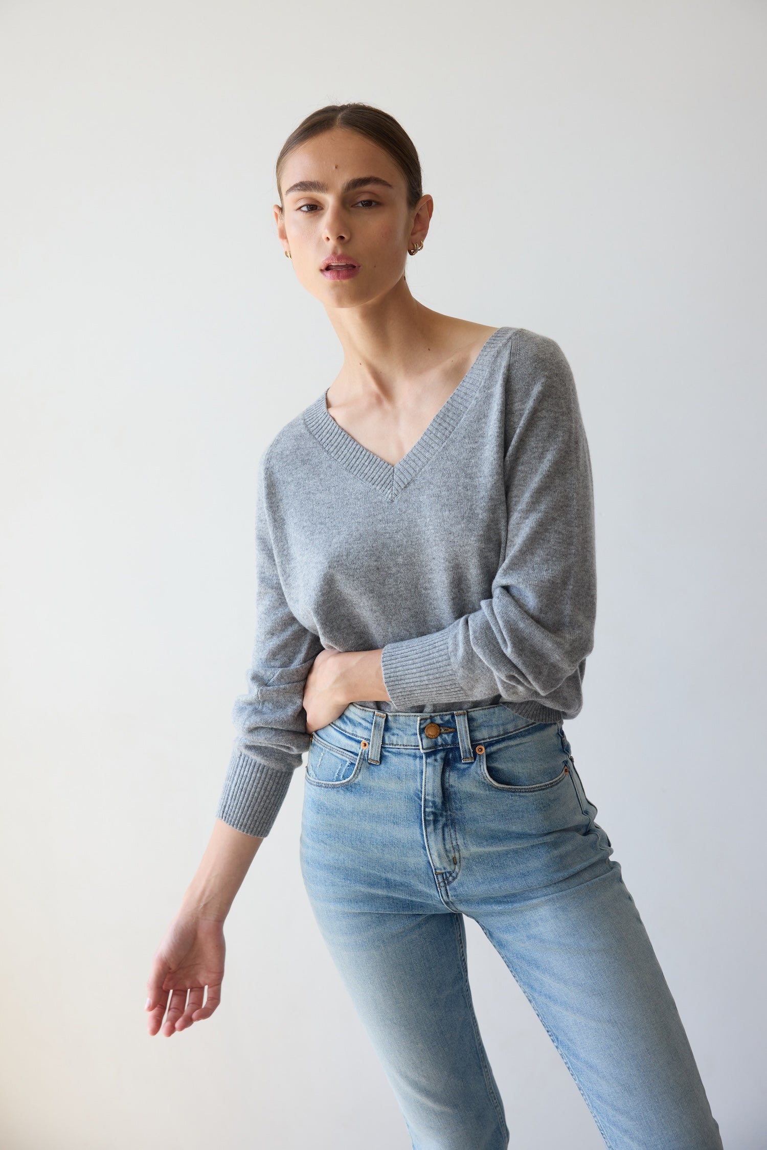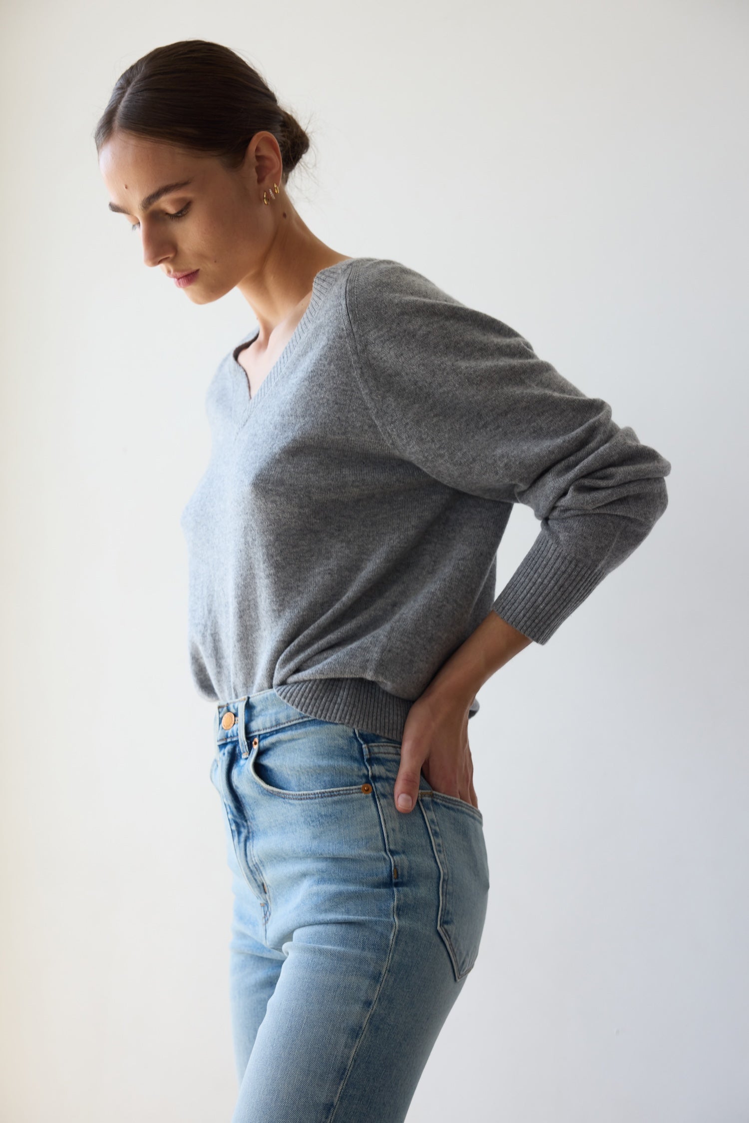 Jamie Haller - The V Fave Cashmere Sweater in Light Heather
