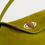A slouchy mini hobo bag crafted in smoothly textured, Italian suede. The fine strap can be slung over the shoulder or carried by hand. Anchored by Picture Jasper turnlock hardware that enhances strength and protection.