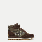 The Valentina you know and love—now with a nod to the classic hiking boot. Crafted in premium green and brown suede, this sporty high-top features a padded ankle collar with a Velcro closure, gold-tone lace hooks with paracord laces, and a durable lug sole. The signature details remain the same: flattering lines, all-day comfort, and an interlocking-V leather detail—a subtle nod to our logo. Perfect for days on the move, it’s ready to slip on and go.
