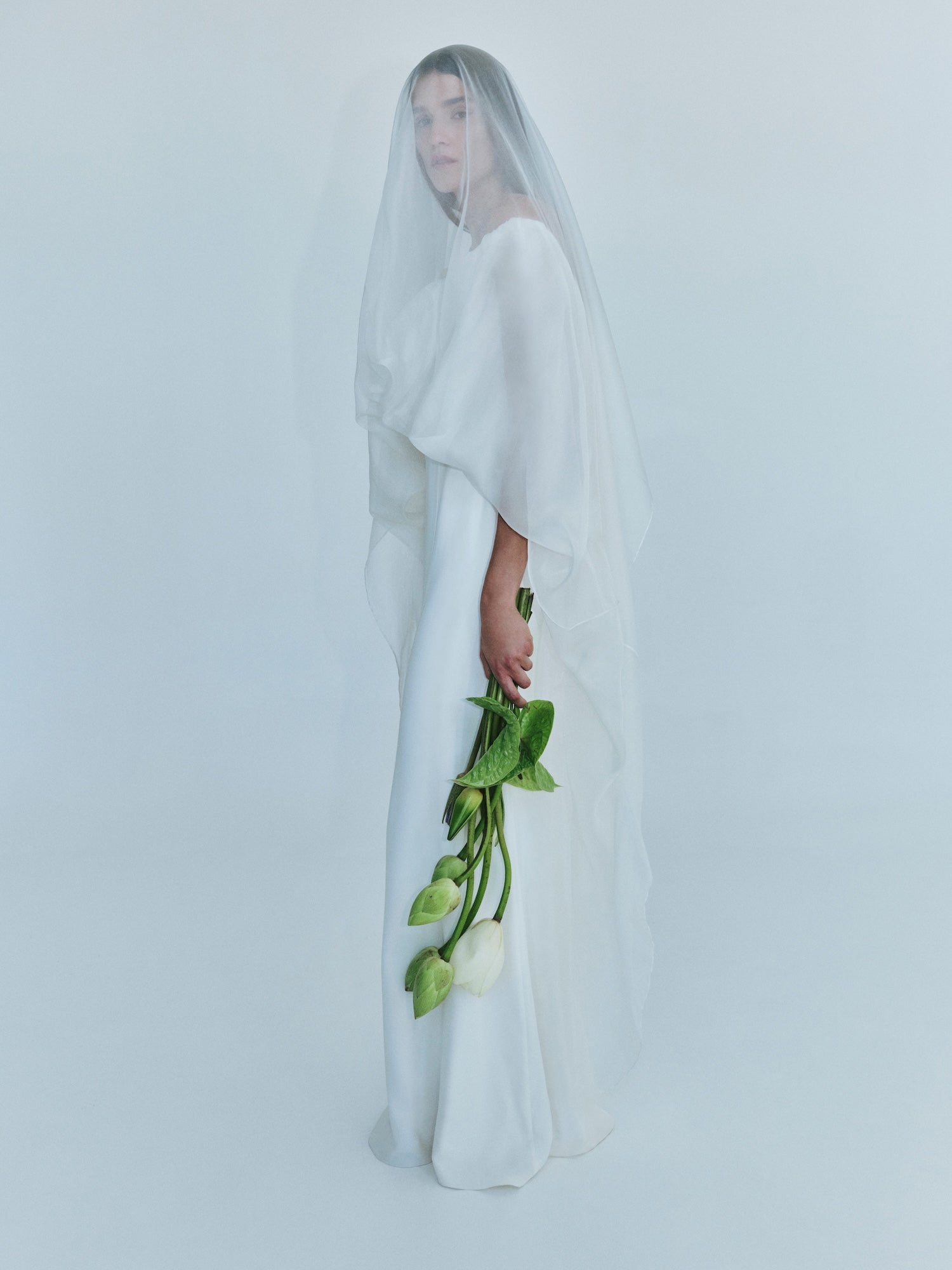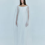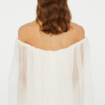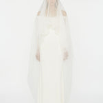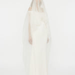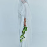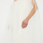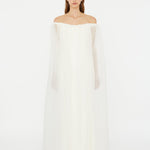 A gown that embodies timeless beauty, in convergence of past and present, merging tradition with modernity. Heavy faille is overlaid with ultra fine silk organza to sculpt the signature Christopher Esber wedding dress.  Finished with a generously volumed silk hem and off-the-shoulder neckline.