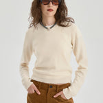 Classic crewneck sweater in pure cashmere with a slightly shrunken, straight silhouette that contours gently to the body. Designed with long, fitted sleeves and a tubular rib neckline for a refined finish. Crafted from soft, weightless cashmere that drapes with natural ease and quiet warmth.