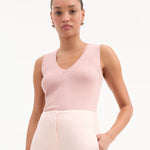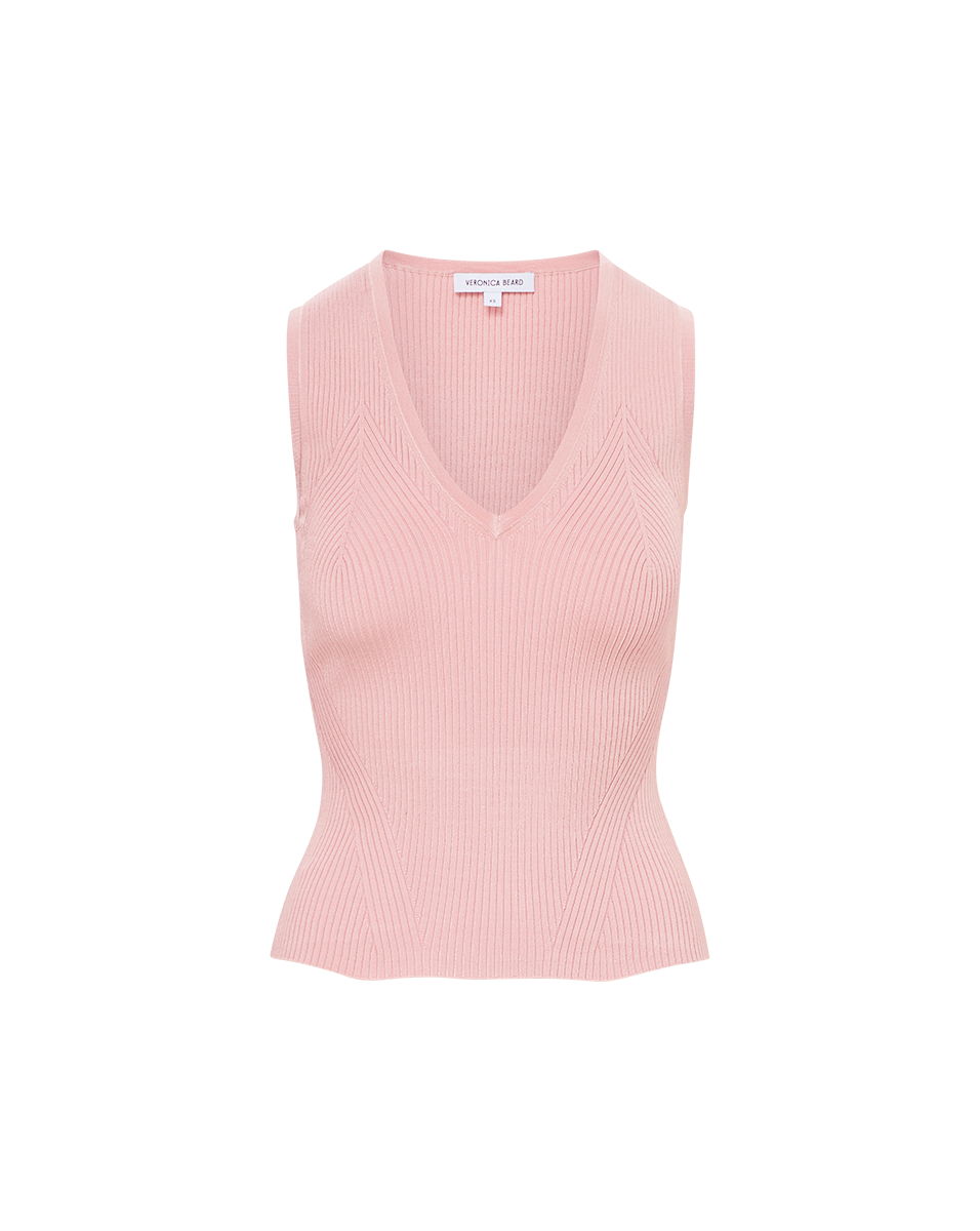 The Sid is the go-to knit tank top every woman needs, perfect on its own or as a layering essential. The lightweight pink shell is made from stretch rayon and features an allover ribbed design. Wear with anything and everything.