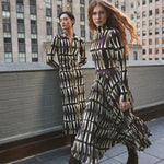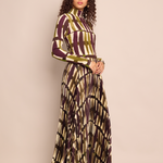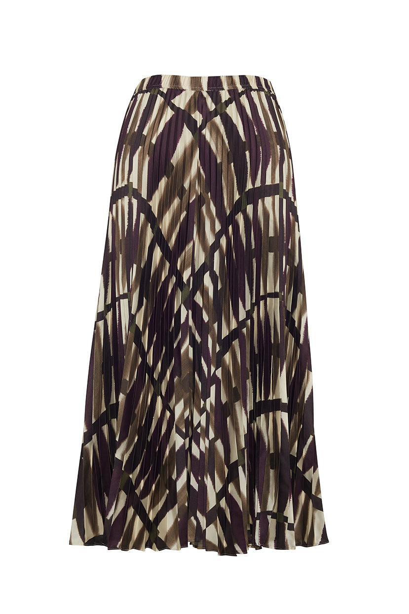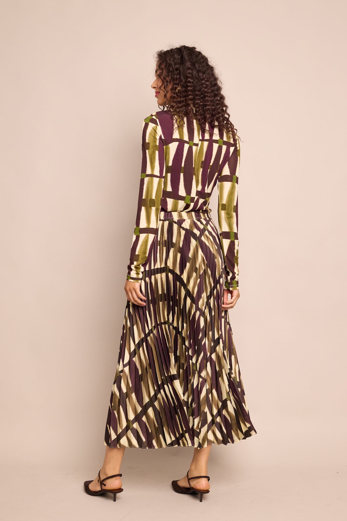 The Vienna Skirt is a fall wardrobe gem with precision accordion pleats. The easy, faux-wrap midi skirt has an elasticated waistband.