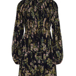• Leaf-hugging smocking at the sleeve releases into blouson sleeves